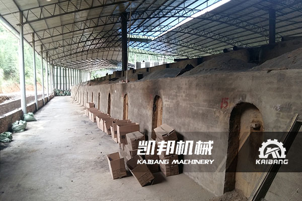 江西日產(chǎn)八噸機制木炭生產(chǎn)線現(xiàn)場。主要原材料為竹屑,炭化方式采用土窯。